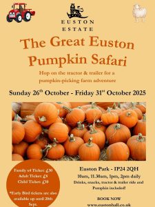 Half term fun at Euston Estate! Bring the family to Euston Park, Thetford, for a day of Halloween fun at the ‘Great Euston Pumpkin Safari’.
